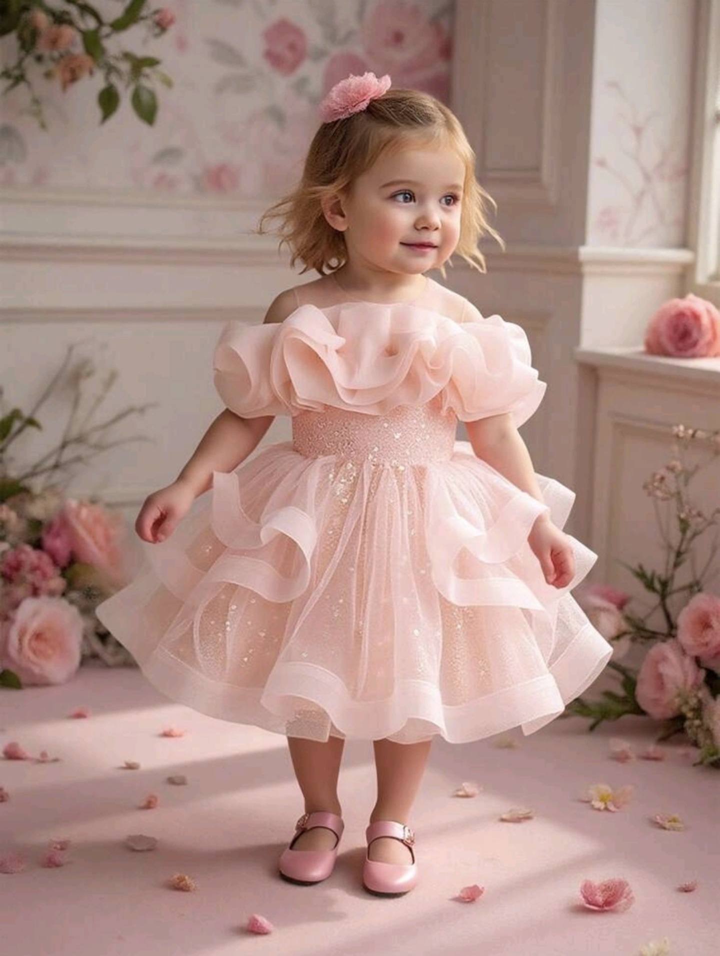 The puff design of this baby birthday party dress represent a timeless element of infant formal wear that has been beloved by families for generations.