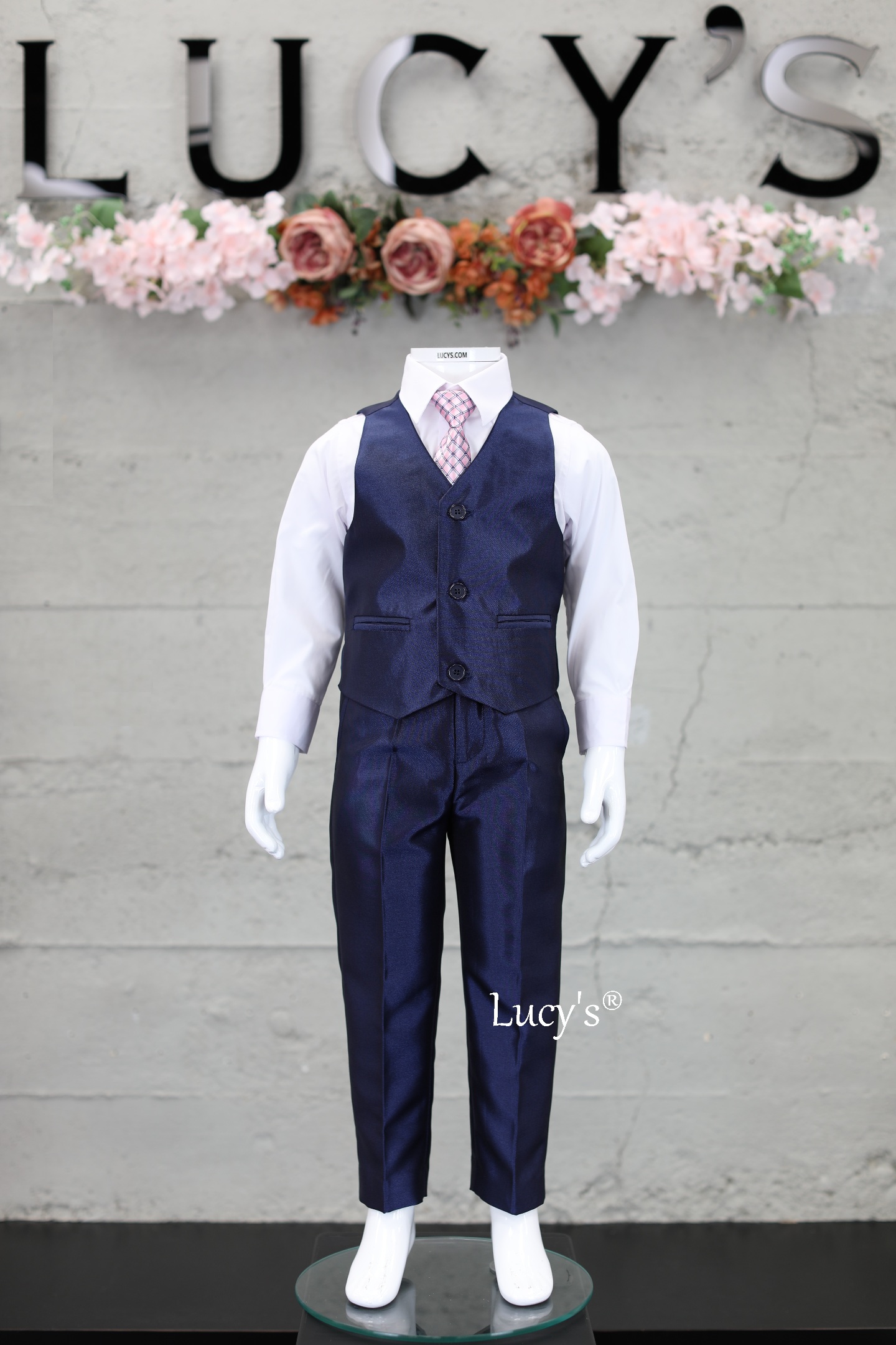Boys 2pc Navy Premium Tailored Waistcoat Suit - Calvin