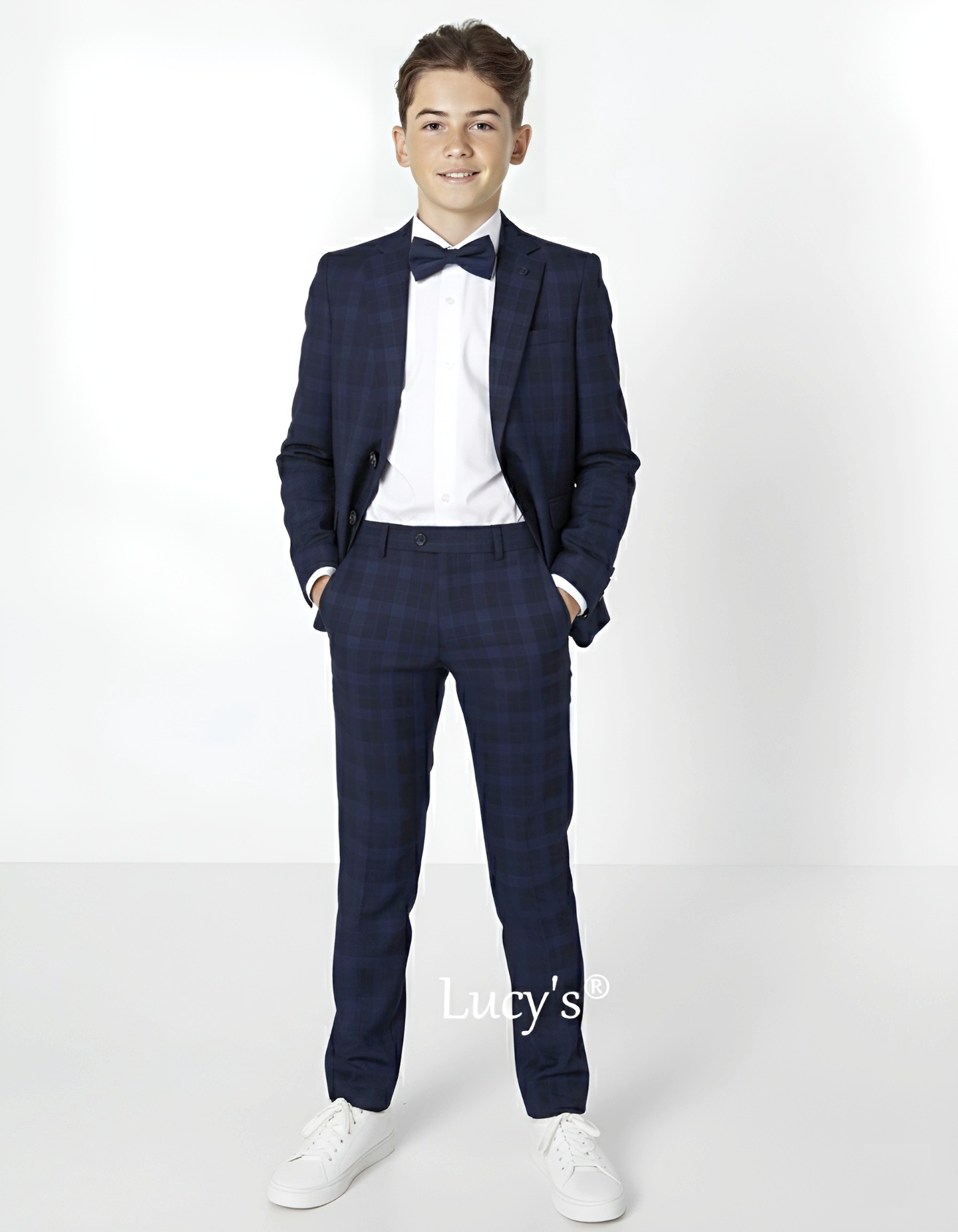 Boys 2pc Premium Navy Blue Plaid Suit for Wedding & Party- William | Lucy's