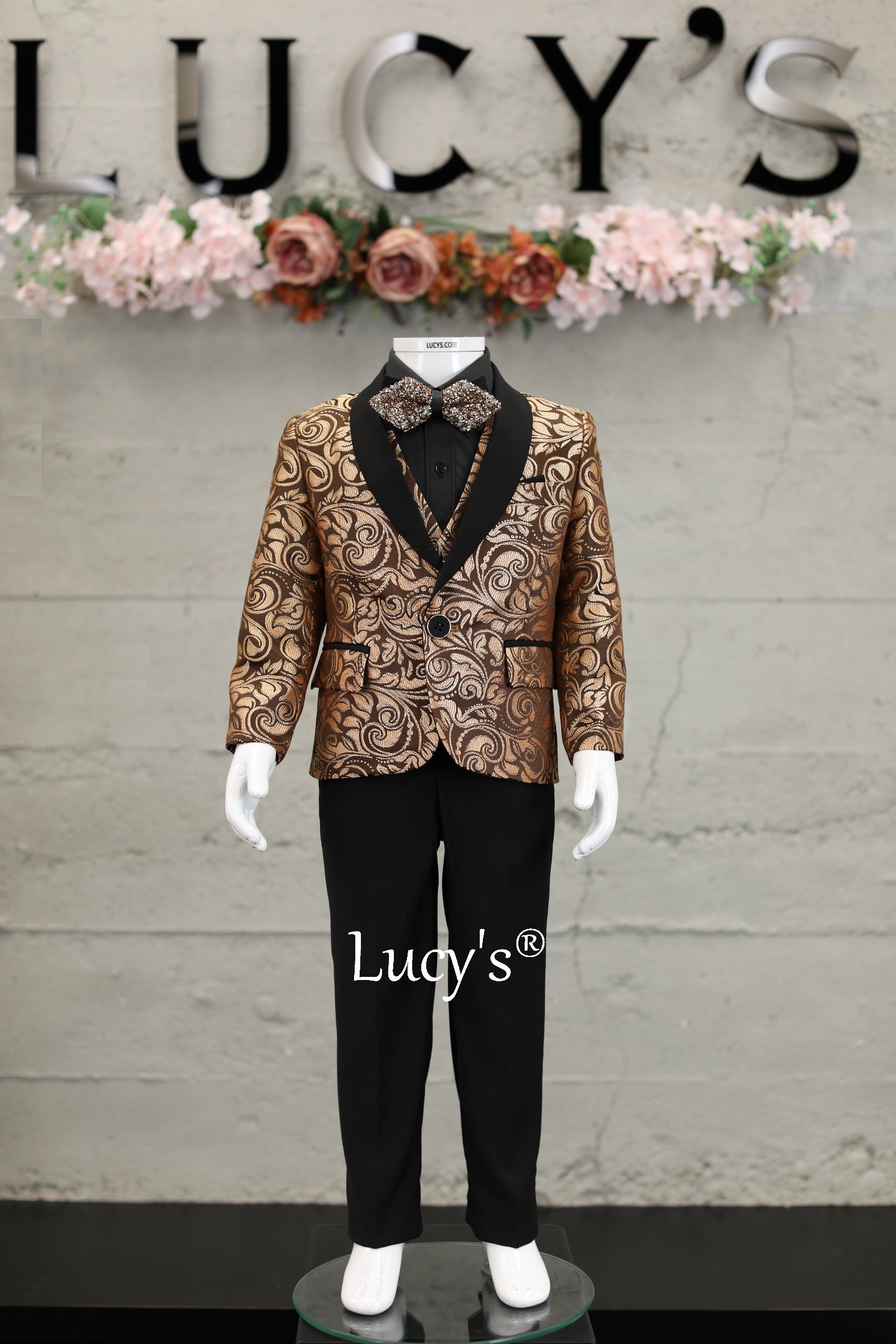 Make your little gentleman shine in our tailored Bronze/Brown Tuxedo for boys.