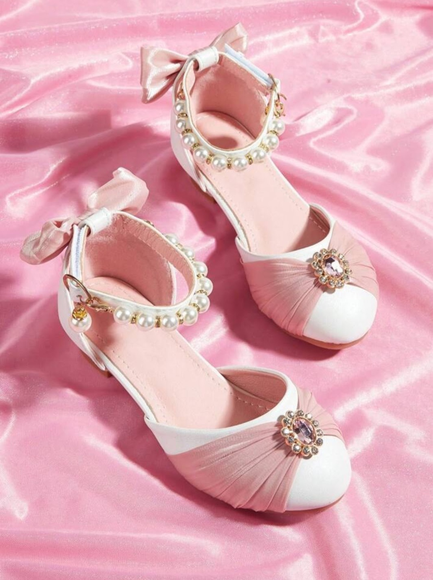 - Product Name: Children Girls High Heel Shoes Rhinestone Decorated (Pink/White)