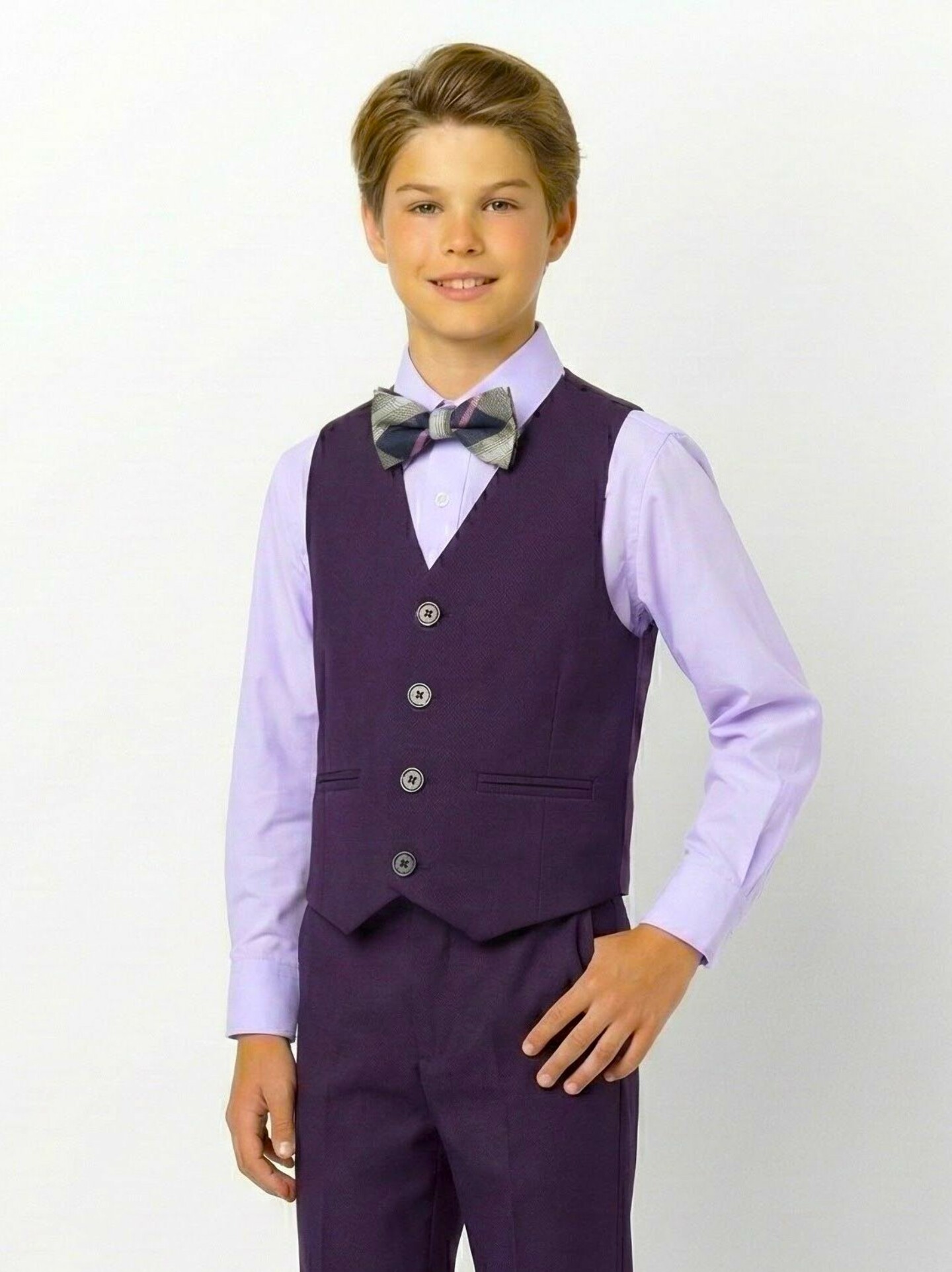 Ideal for formal events, weddings with purple themes, spring and fall celebrations, or adding sophisticated layers to boys' formal wardrobes. Coordinates perfectly with the Jayden jacket and trousers for complete three-piece styling.