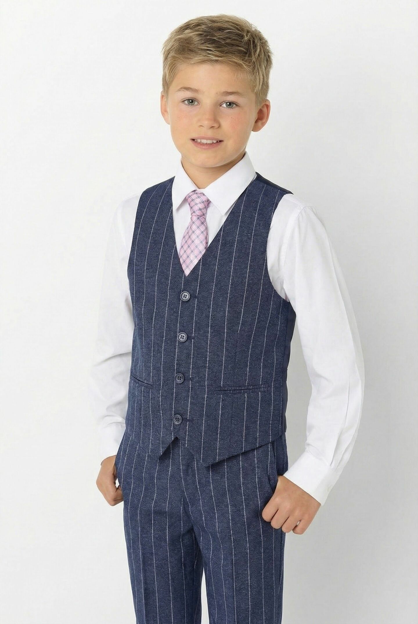 Leonardo Blue Pinstripe Four-Button Boys Waistcoat | Lucy's