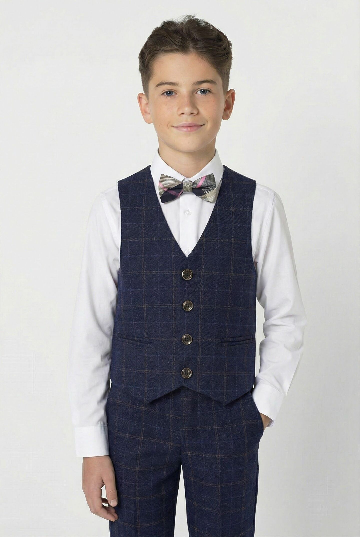 Ideal for modern formal events, contemporary weddings, autumn and winter celebrations, or adding sophisticated layers to boys' formal wardrobes. Coordinates perfectly with the Leroy jacket and trousers for complete three-piece styling.