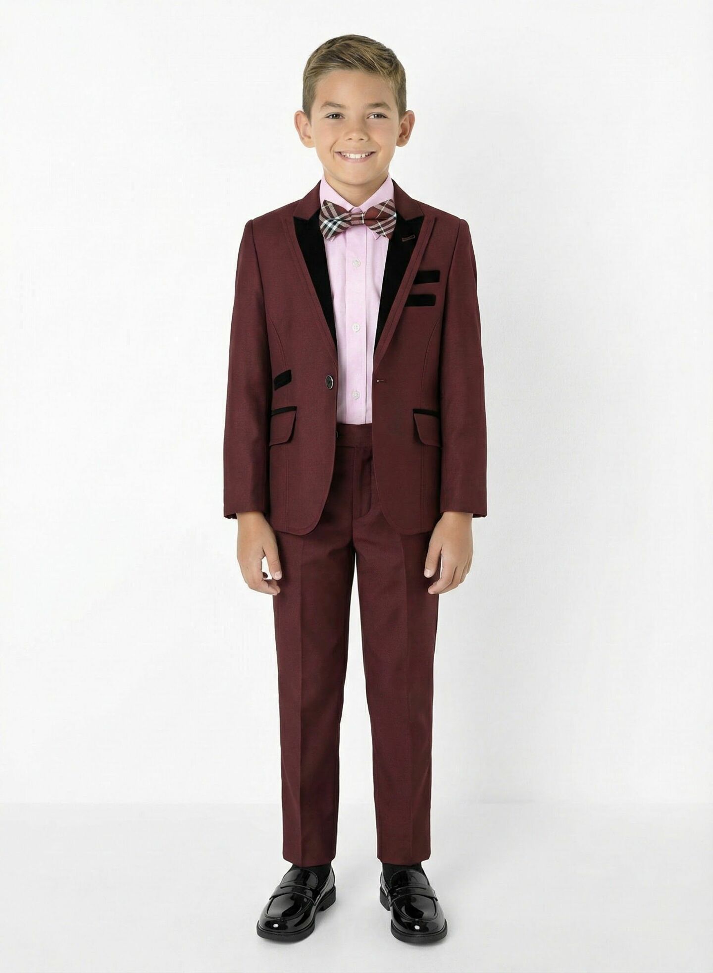 Shop ❱ Monte Carlo Maroon Boys 2-Piece Suit with Black Velvet Lapels – Jacket & Trousers | Lucys